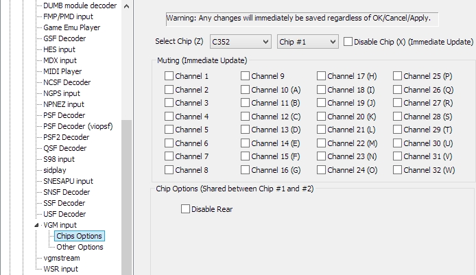 I updated to the latest version of in_vgm for winamp but there's no difference, it's less clear in winamp. My settings are the default: https://i.imgur.com/Jtb4kOV.png